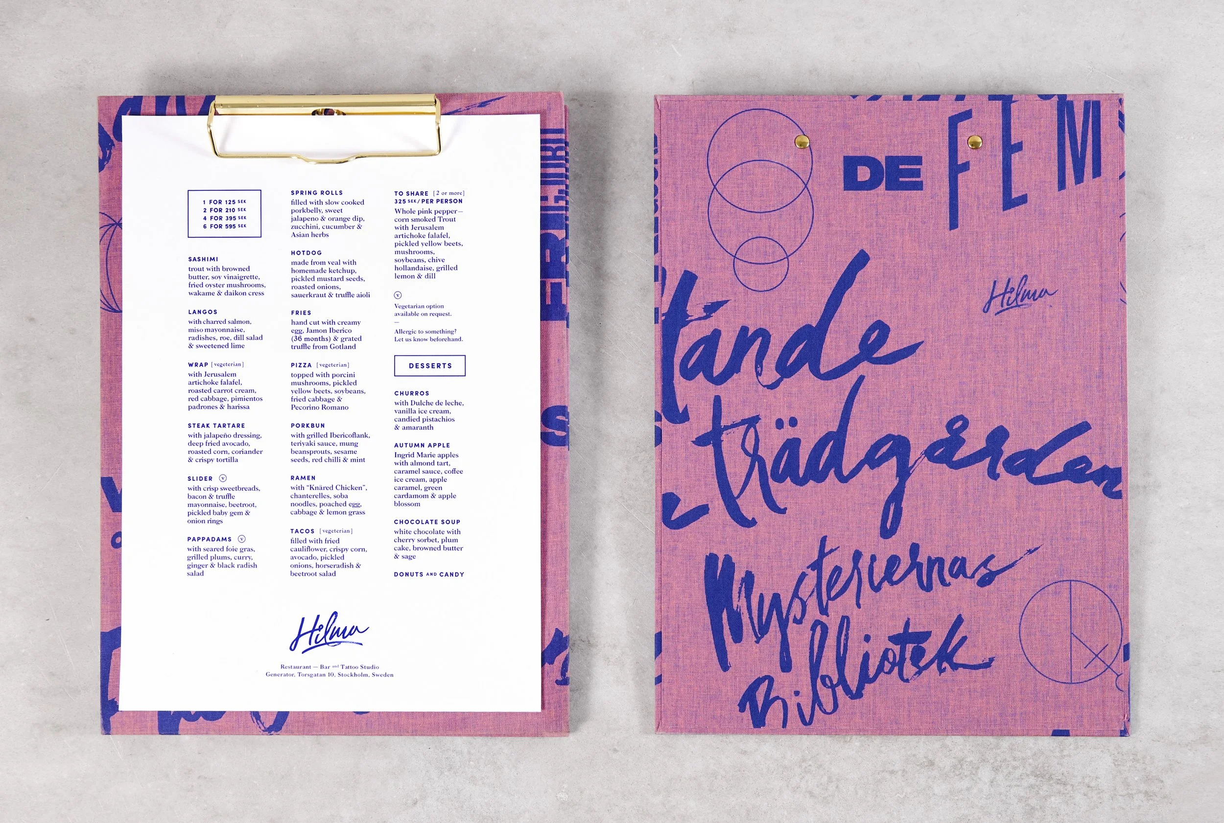 We let the artist herself shine at the core of Hilma’s identity, building the entire visual concept from snippets, words, and symbols found in Hilma af Klint’s personal notebooks — kept during her séances in the early 20th century. The result is a typography-driven identity where type functions as both illustration and pattern. Each item in the identity is custom-made, featuring poetic Swedish words from Hilma af Klint’s writings. These elements were screen printed or letterpressed onto materials such as cloth-covered handmade clipboards with brass details, paper bags, staff shirts, business cards, and more.